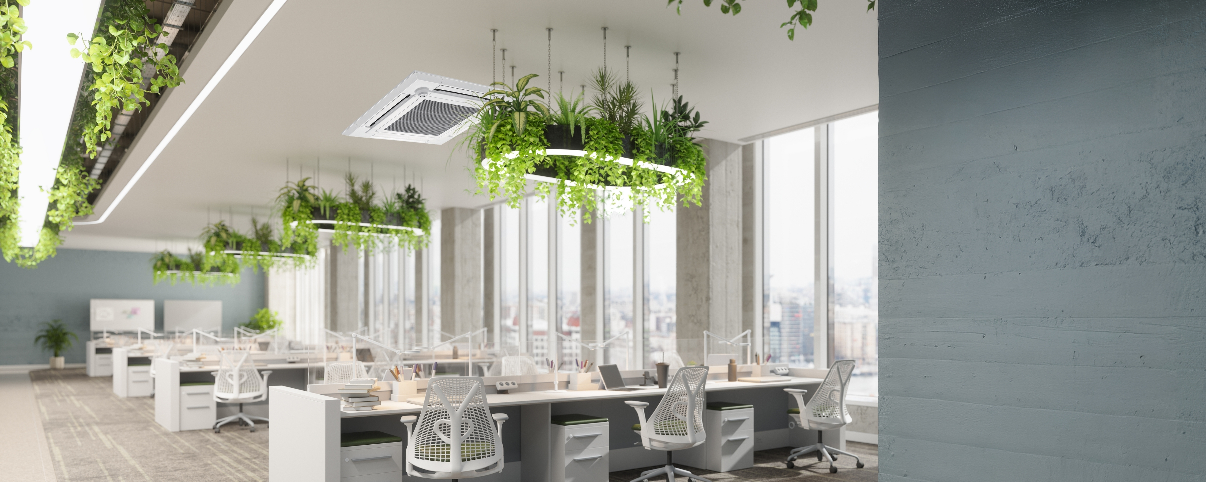 That is why efficient HVAC systems such as the Mr. SLIM Inverter Series R32 are so critical. It uses an inverter to reduce the compressor cycles required to maintain a precise temperature, improving energy efficiency. The Mr. SLIM series air conditioner also conceals into the ceiling, removing the need for a mechanical room or hefty air conditioning units that consume significant space.